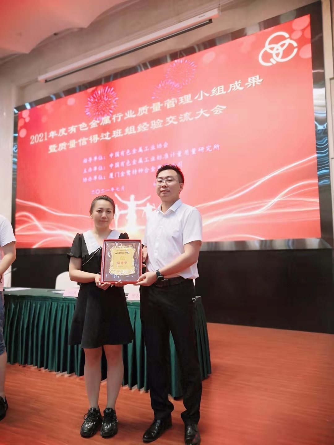 7月20日-22日,2021年度中國有色金屬行業質量管理小組成果暨質量信得過班組經驗交流大會在廈門舉行,老廠分公司、銅業分公司參評QC項目從全國195個成果中脫穎而出,獲評大會優秀。