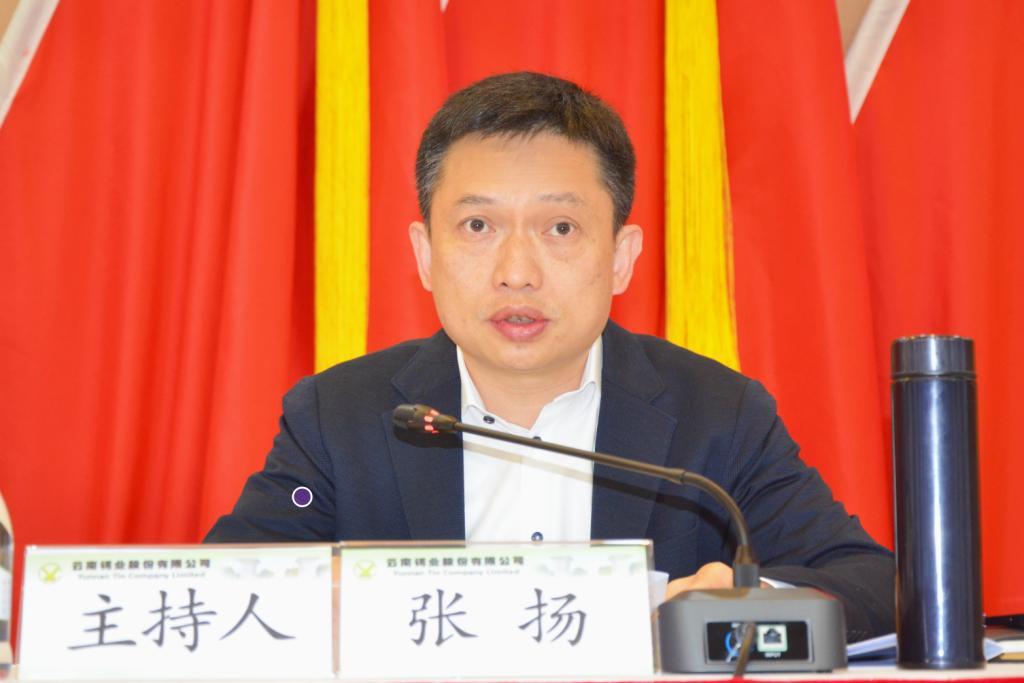 錫業股份黨委副書記、工會主席張揚主持會議,通報了2023年度安全環保責任狀考核結果。