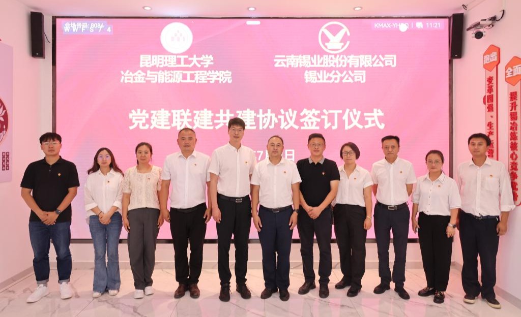 7月9日,錫業(yè)分公司黨委與昆明理工大學(xué)冶金與能源工程學(xué)院黨委舉行黨建聯(lián)建共建協(xié)議簽訂儀式,進(jìn)一步發(fā)揮黨建引領(lǐng)作用,建立長效聯(lián)建共建機(jī)制,深化產(chǎn)學(xué)研合作成效。