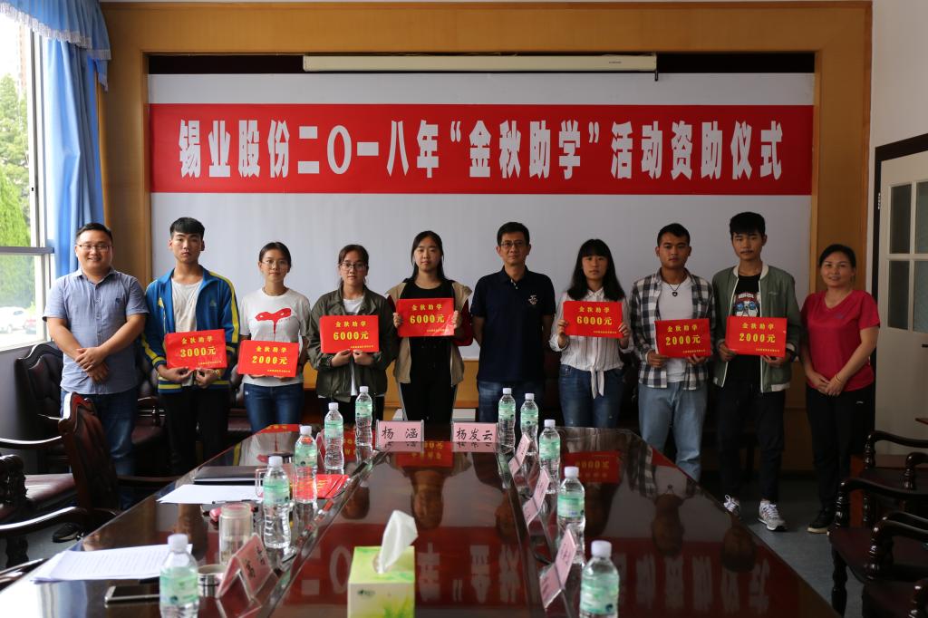8月21日,錫業股份在個舊舉行2018年金秋助學資助儀式。錫業股份黨委委員、工會主席李林向取得優異成績受到資助的大學生們表示親切的問候和祝賀,希望他們把各級工會組織的關愛轉化成精神動力,克服學習和生活中的各種困難,在嶄新的人生舞臺上,唱響最華美的樂章。