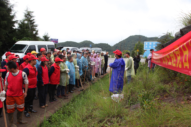 植樹現場,雖然陰雨綿綿,氣氛卻熱火朝天。大家分工有序,齊心協力,挖土填坑、揮鍬培土、澆水灌溉……。經過一個上午的辛勤勞動,植入的300余株樹苗在微風中構成了一道靚麗的綠色風景線。